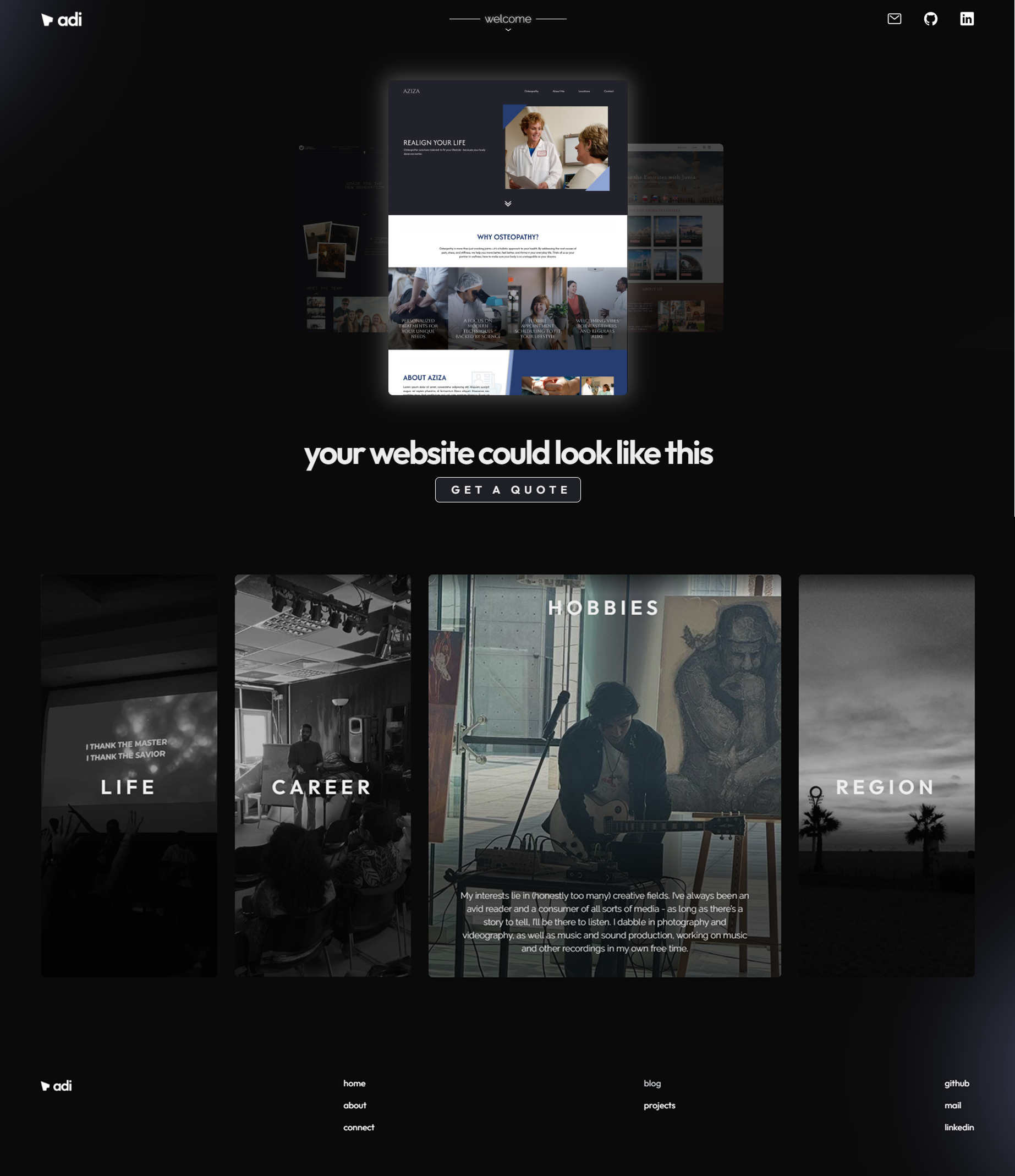 The site you're currently looking at. A fun project for myself to work creatively as well as showcase my work so far. Allows for me to market my own freelance work.